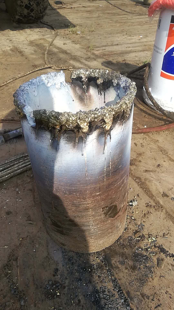 1、施工目的:取套。 2、施工前狀況:管外漏。 3、施工后要達(dá)到的目標(biāo):試壓21兆帕,壓力15分鐘,壓力不降為合格。 4、計劃的施工程序:通井,確定井內(nèi)人工井底位置,套內(nèi)是否有變型和落物,驗漏,確定漏點位置,下機械丟手,套銑。 5、*前面的圖片是自制的銑頭。